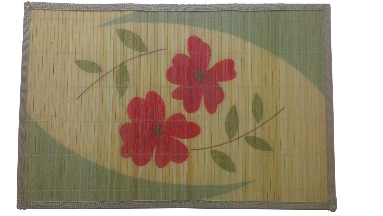 Multi color flowers digitally printed on cream color bamboo sticks. Comes with net backing and stitched border to give it durability. It can be folded for easy storage. Easy wipe and clean, do not soak. Fast colour.