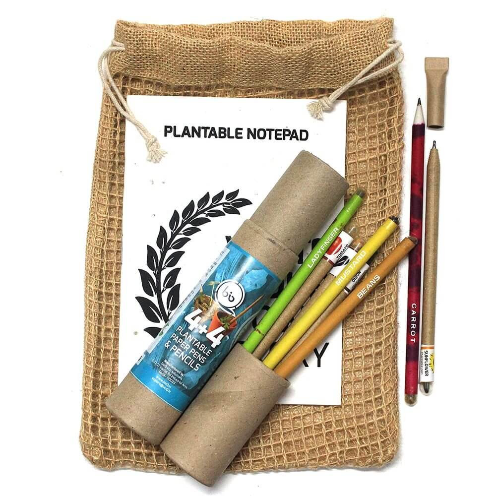 • 1 box of 4 eco-friendly pens & 4 paper pencils with mixed seeds