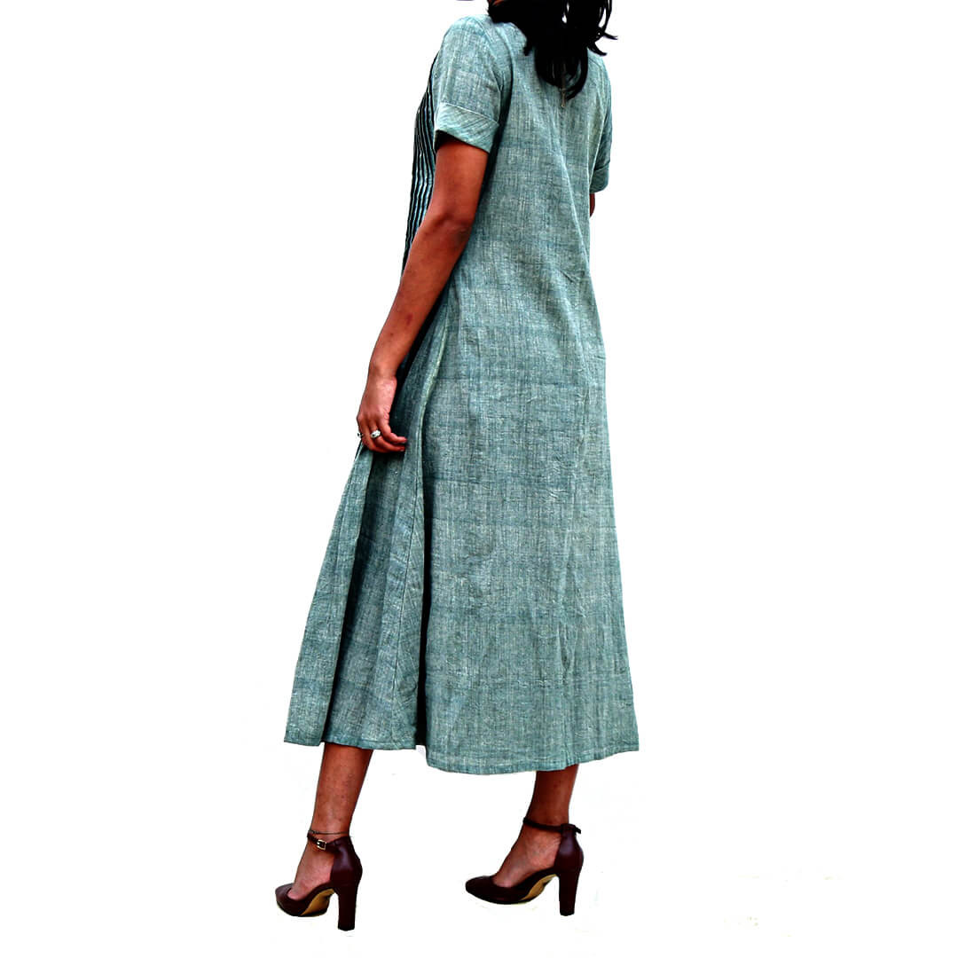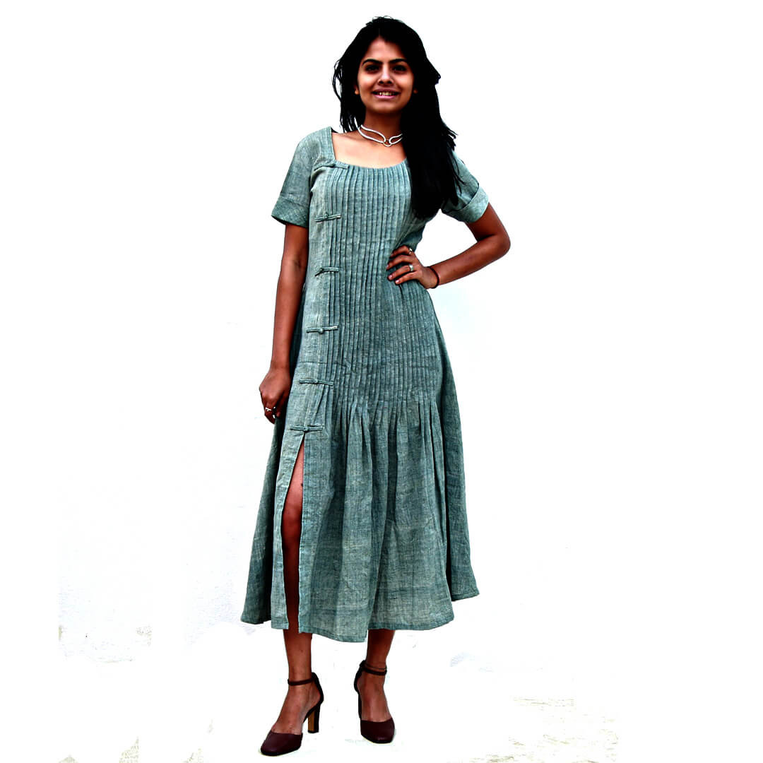 Cool and casual this Pista Green Long Pin Tuck Dress with a Slit is perfect for a summer evening. Classy, stylish, fashionable. Made with organic cotton.