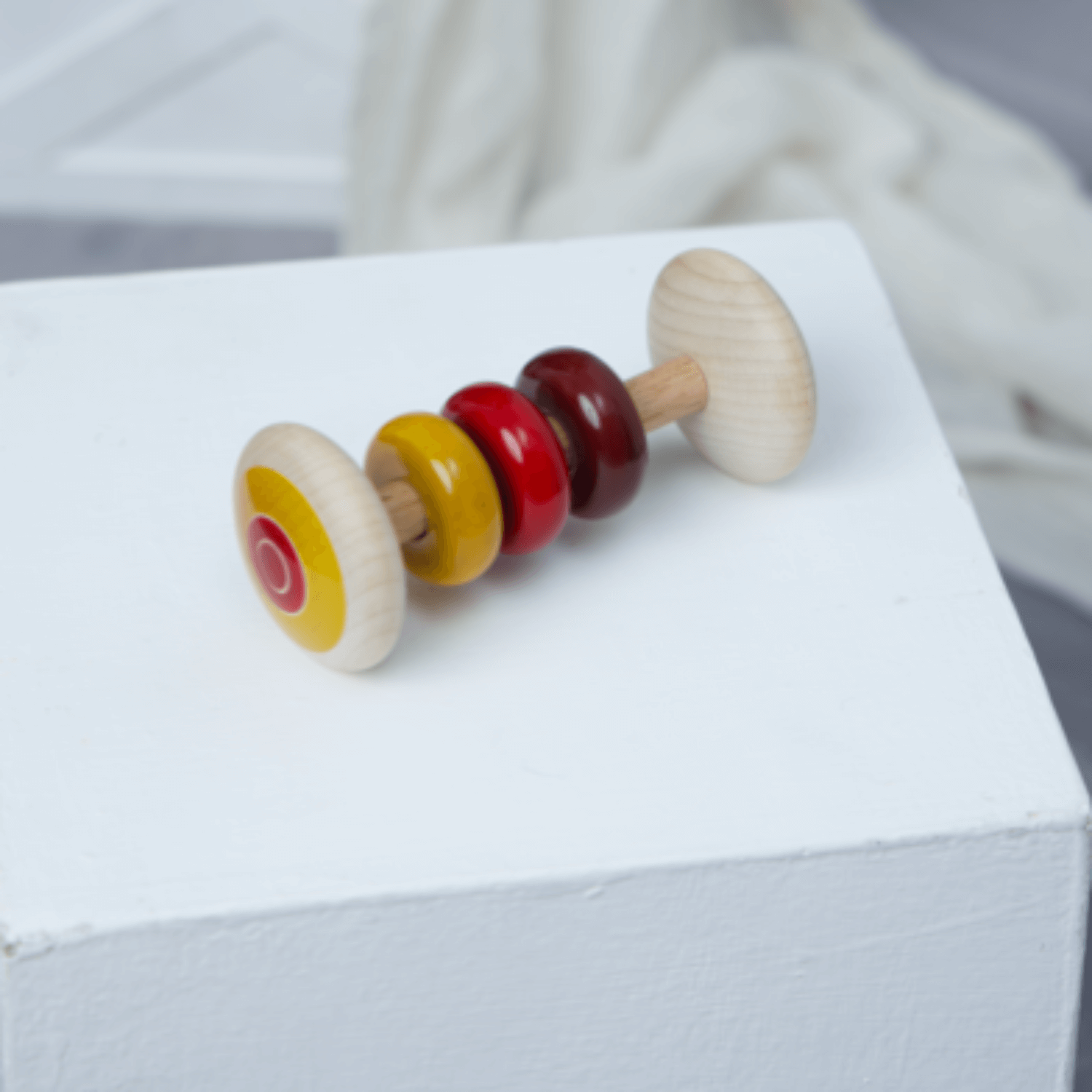 Rattle Set (Half Ring - Round Shape - Shaker) : Made from high-quality, smooth, and natural wood, these rattles are safe for babies to hold and shake. The set includes 3 rattles - Half Ring, Round Shape & Shaker